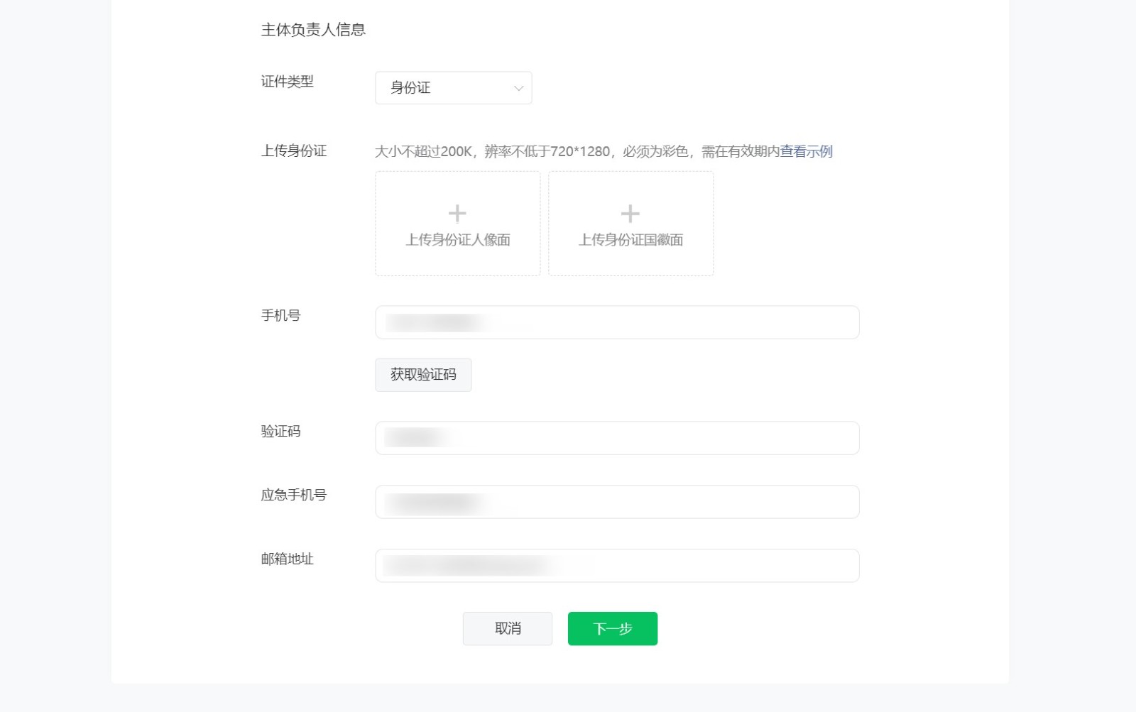 4、小程序負責人信息填寫(xiě)及人臉核身