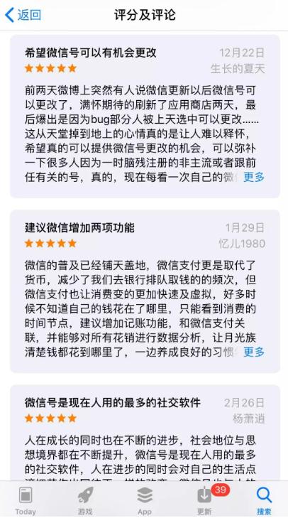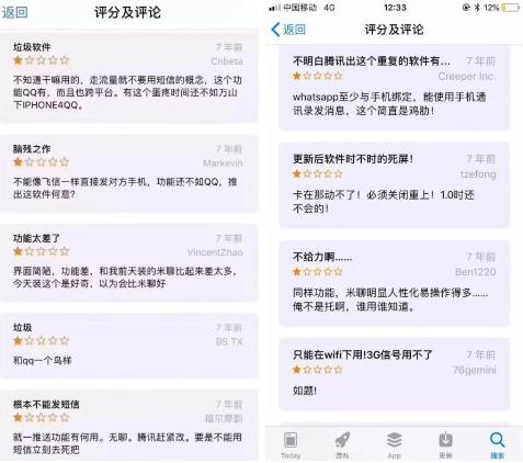 如今,重新打開(kāi)蘋(píng)果微信下載頁(yè)面,底下的評論已經(jīng)沒(méi)有了7年前的“戾氣”,翻看了幾頁(yè),都是用戶(hù)在真誠的提建議。
