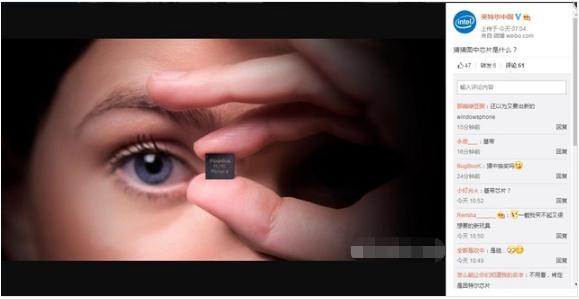 今天清晨,英特爾中國微博發(fā)布了一張的圖片,圖片上有一款不知名的芯片,還讓網(wǎng)友猜是什么芯片。