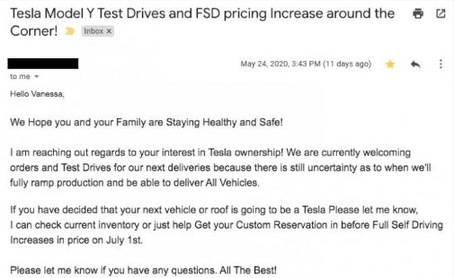 特斯拉 Model Y 即將開(kāi)始接受消費者的預約試駕,源自外媒報道的國外一名消費者收到的試駕郵件。