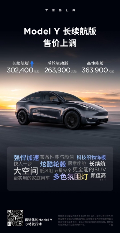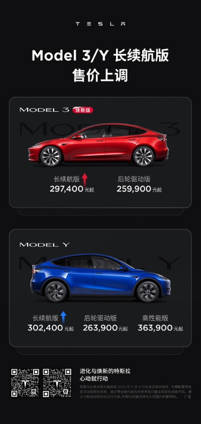 特斯拉中國宣布 Model 3 / Y 長(cháng)續航版漲價(jià) 1500/2500 元,分別為 29.74/30.24 萬(wàn)元 09:27:09
