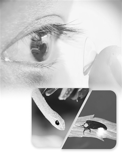 ?、賵D為上轉換隱形眼鏡。佩戴它后,人類(lèi)有望突破視覺(jué)限制,“看見(jiàn)”蛇、螢火蟲(chóng)等動(dòng)物眼中的世界。受訪(fǎng)單位供圖
